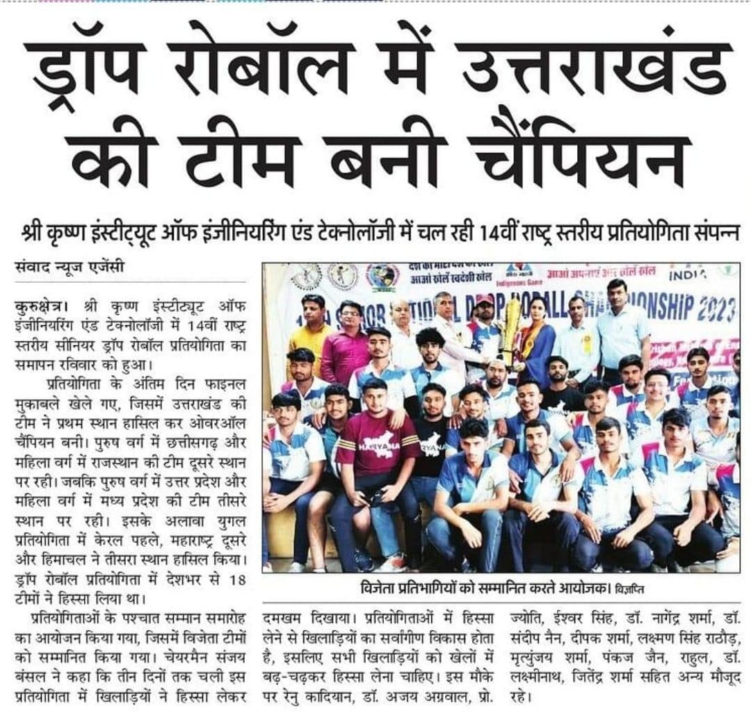 The 14th Senior National Drop Roball Championship concluded with Haryana’s boys’ and girls’ teams clinching the first position. The event showcased fierce competition among top teams from across the country, with Maharashtra and Himachal securing the second and third positions respectively. Hon'ble dignitaries felicitated the winners and applauded the high standard of performance throughout the tournament.