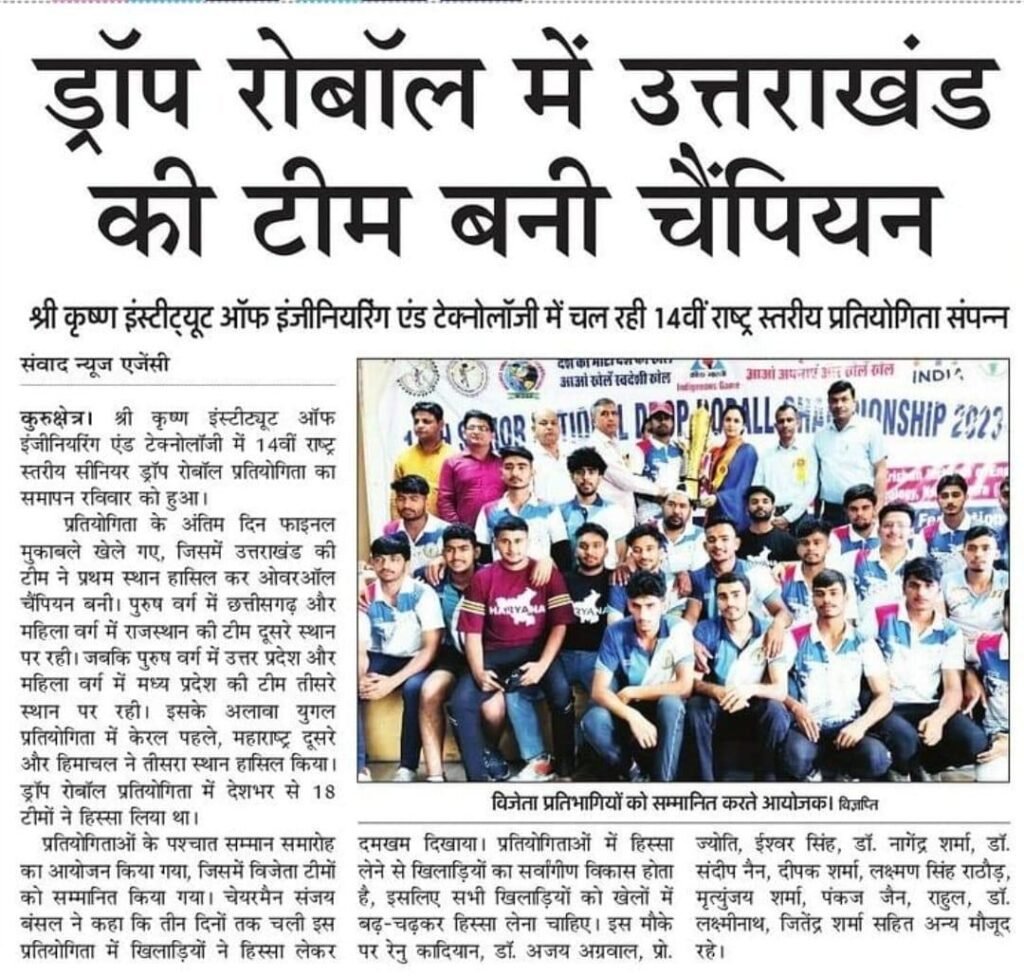 The 14th Senior National Drop Roball Championship concluded with Haryana’s boys’ and girls’ teams clinching the first position. The event showcased fierce competition among top teams from across the country, with Maharashtra and Himachal securing the second and third positions respectively. Hon’ble dignitaries felicitated the winners and applauded the high standard of performance throughout the tournament.