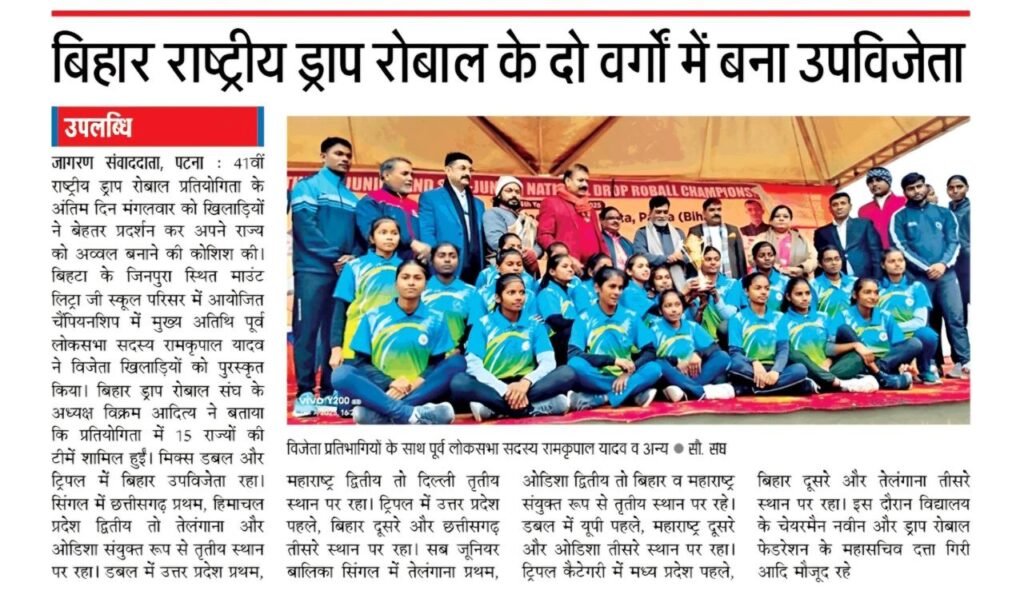 The final day of the Drop Ro Ball National Championship witnessed high-energy matches and outstanding performances by athletes from across the country. Chhattisgarh, Himachal, Uttar Pradesh, Bihar, Telangana, and Maharashtra showcased dominance across singles, doubles, and mixed categories. Chief Guest Ram Krupal Yadav honored the winners, making the closing ceremony a proud and memorable moment.