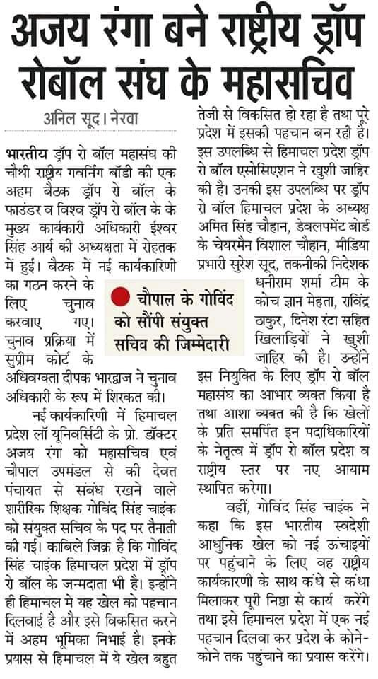Dr. Devendra Dhul Appointed President, Ajay Ranga Named General Secretary in Newly Formed National Drop Roball Executive Body PrevPreviousEfforts Underway to Get Drop Roball Recognized by Sports Council NextDrop Roball Federation Hosts Global Webinars for India and Sri Lanka, Promotes Indigenous Sport InternationallyNext